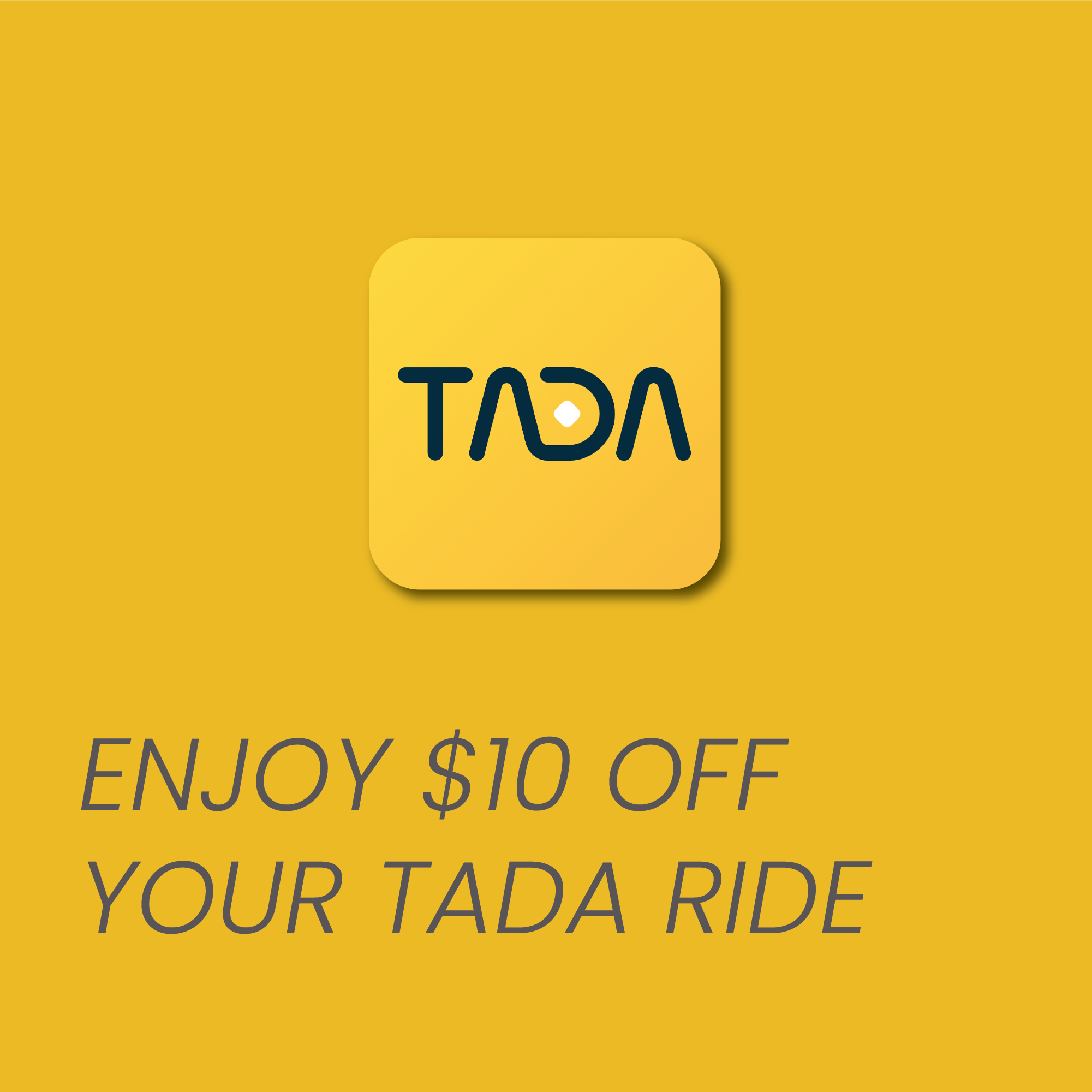 TADA 5 x $10 OFF Voucher Code! Find your codes in the order confirmation email and enjoy amazing discounts on Promo Code, Transport, Vouchers, TADA Rides, and Ride Vouchers. Grab yours now!
