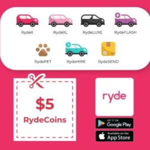 Ryde Voucher Code: $5 Off! (Expires 31 Mar 2024; Get Code through Lazada Wallet View Coupon)