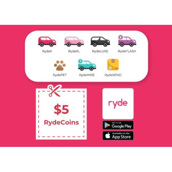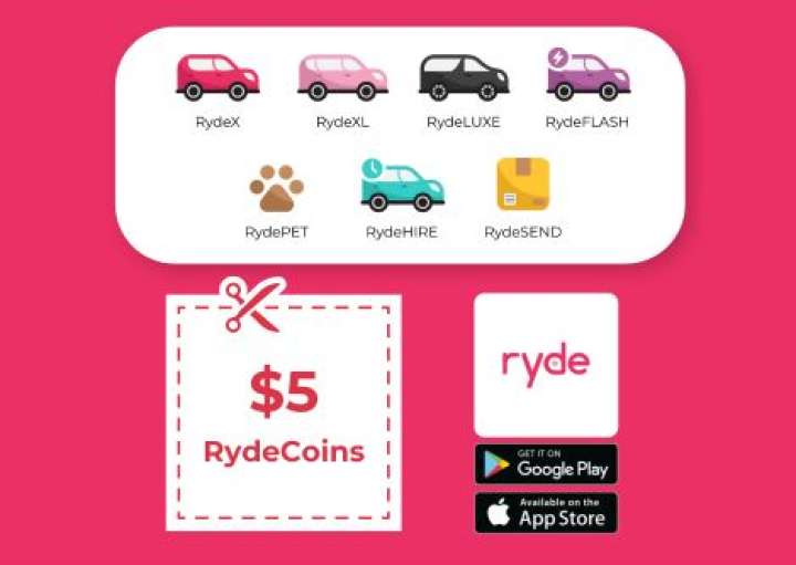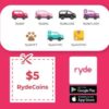 Ryde Voucher Code: $5 Off! (Expires 31 Mar 2024; Get Code through Lazada Wallet View Coupon)